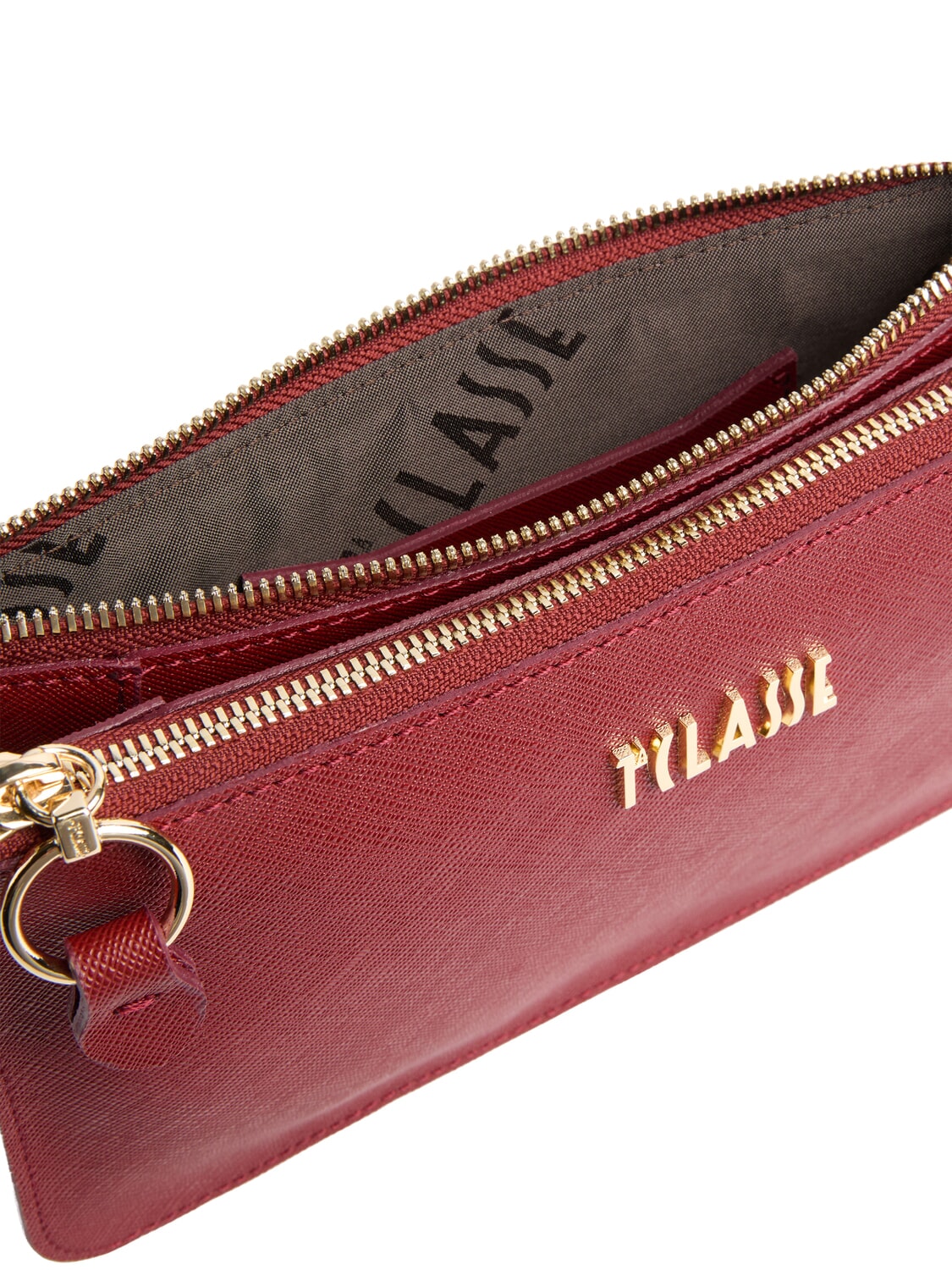 Card holder applied in embossed saffiano print fabric with 1st Class logo