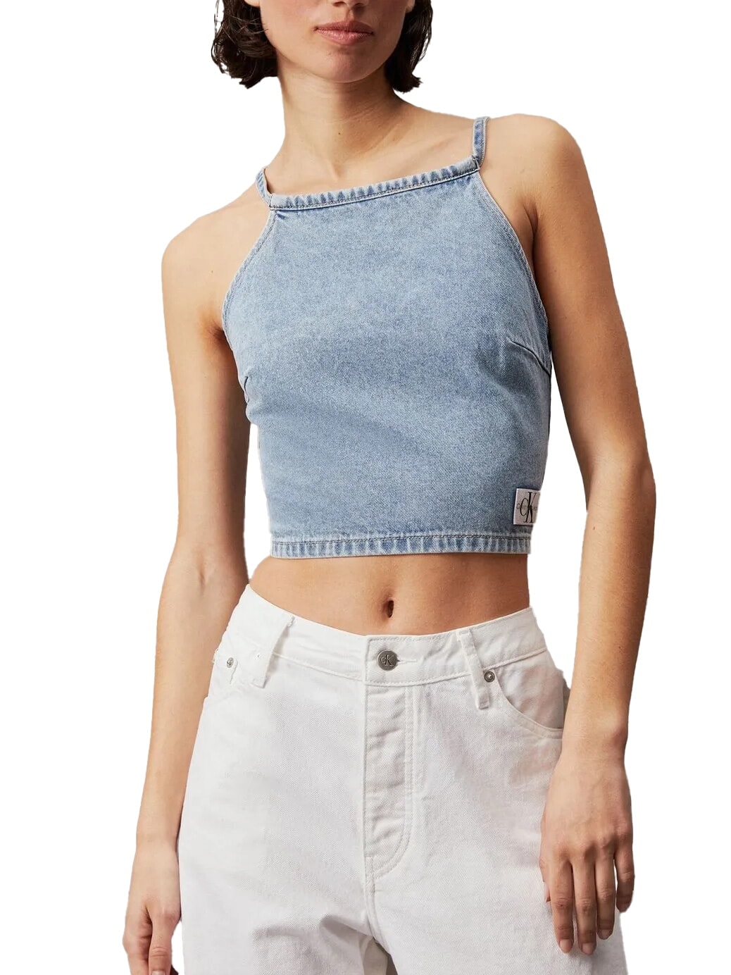 CK JEANS Denim crop top with laces
