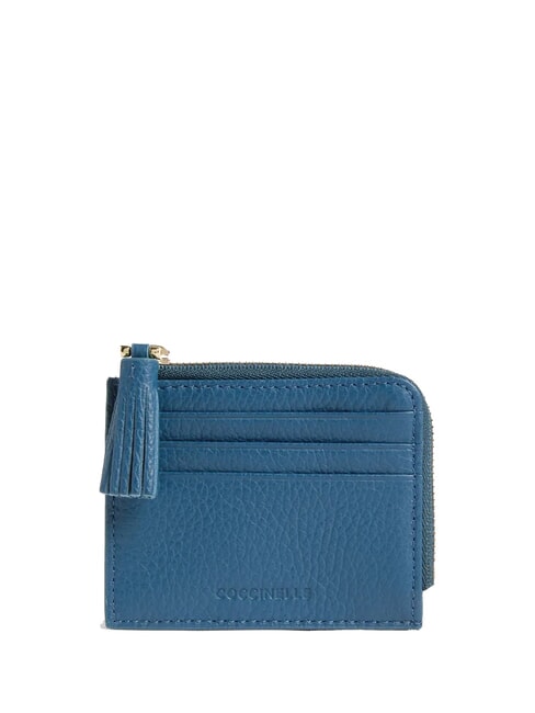 TASSEL Card holder with zip in hammered leather