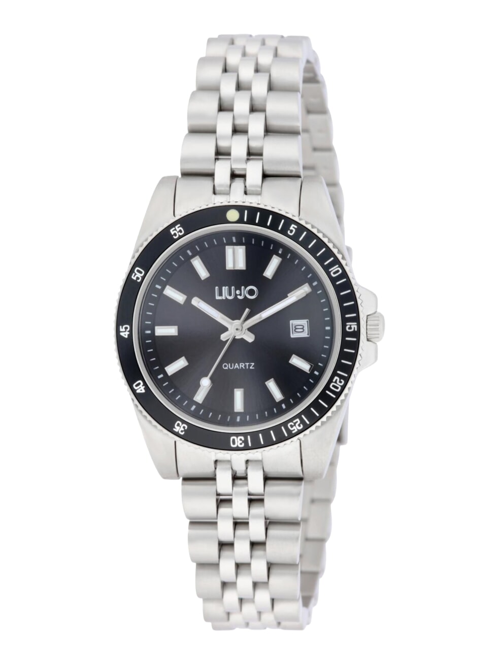 Silver-colored steel case with a diameter of 33 mm