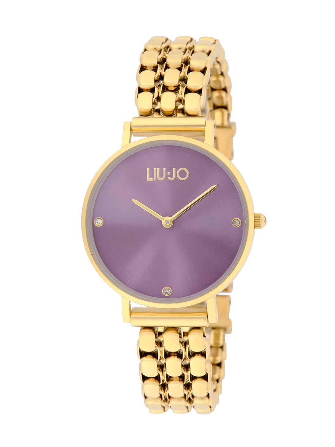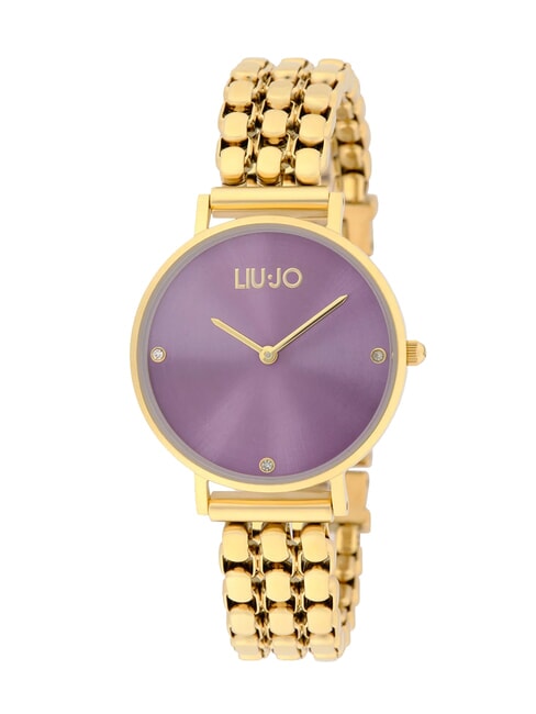 Yellow gold-colored steel case with a diameter of 32 mm
