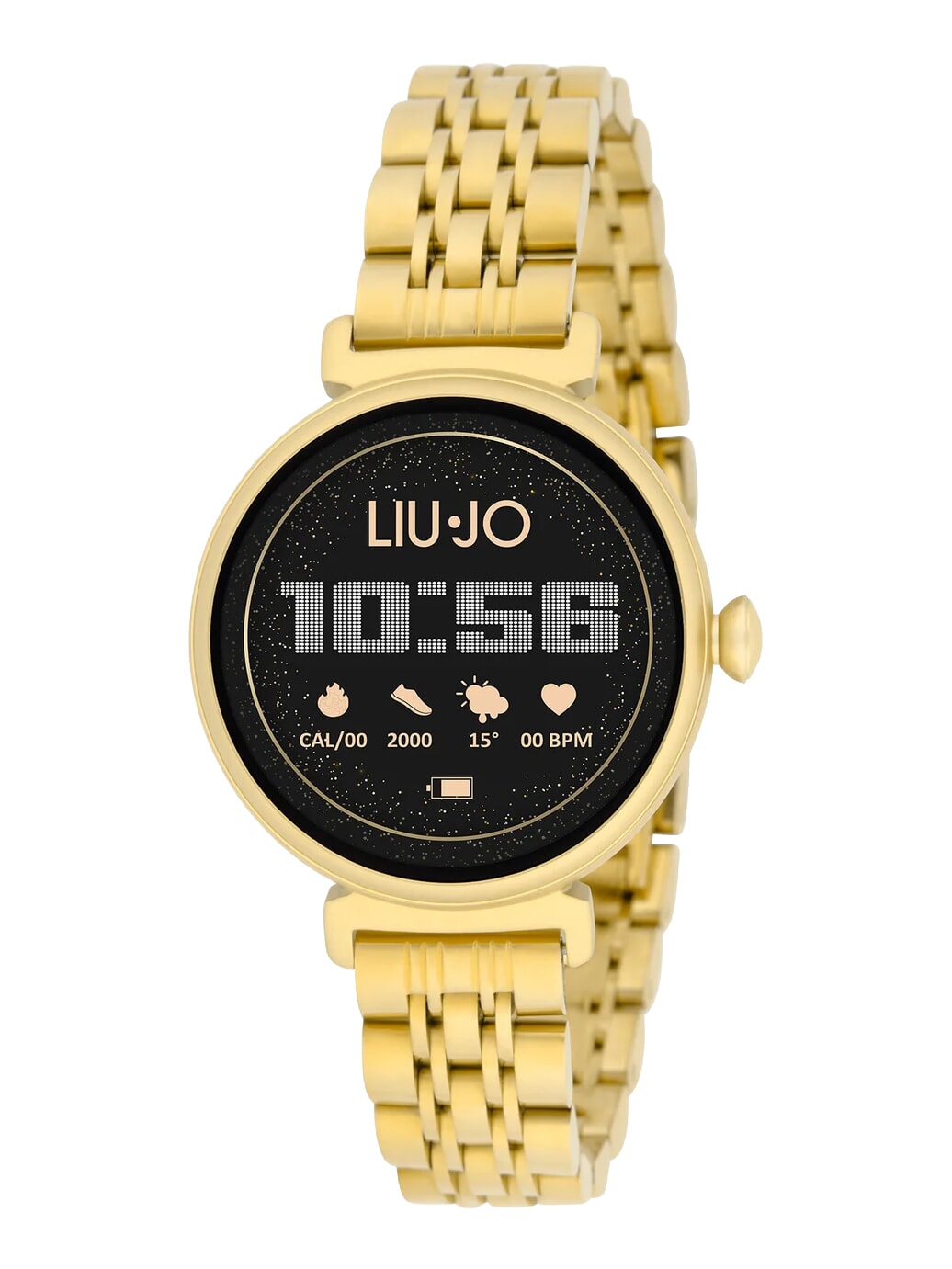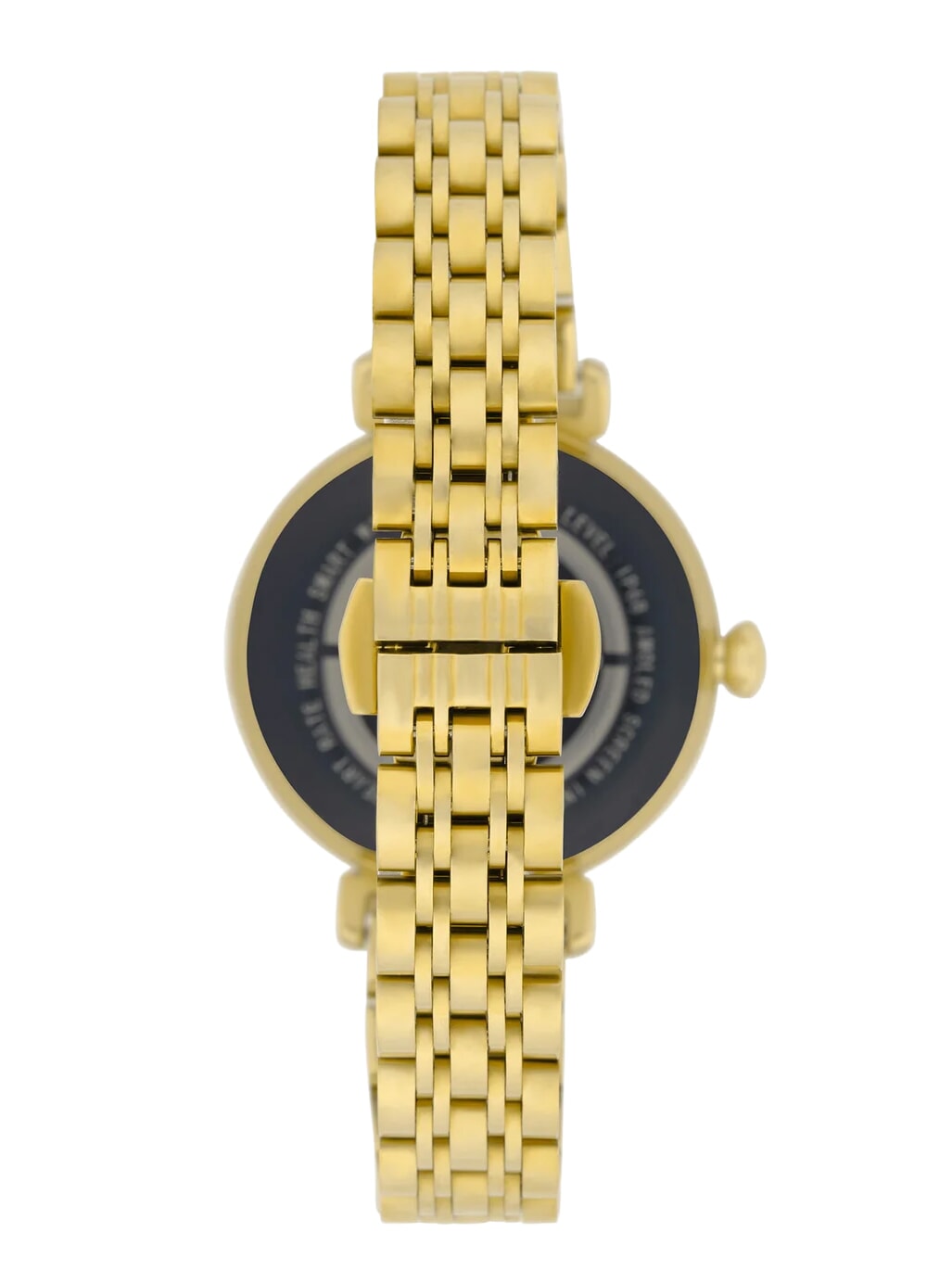 The strap is in gold-colored stainless steel