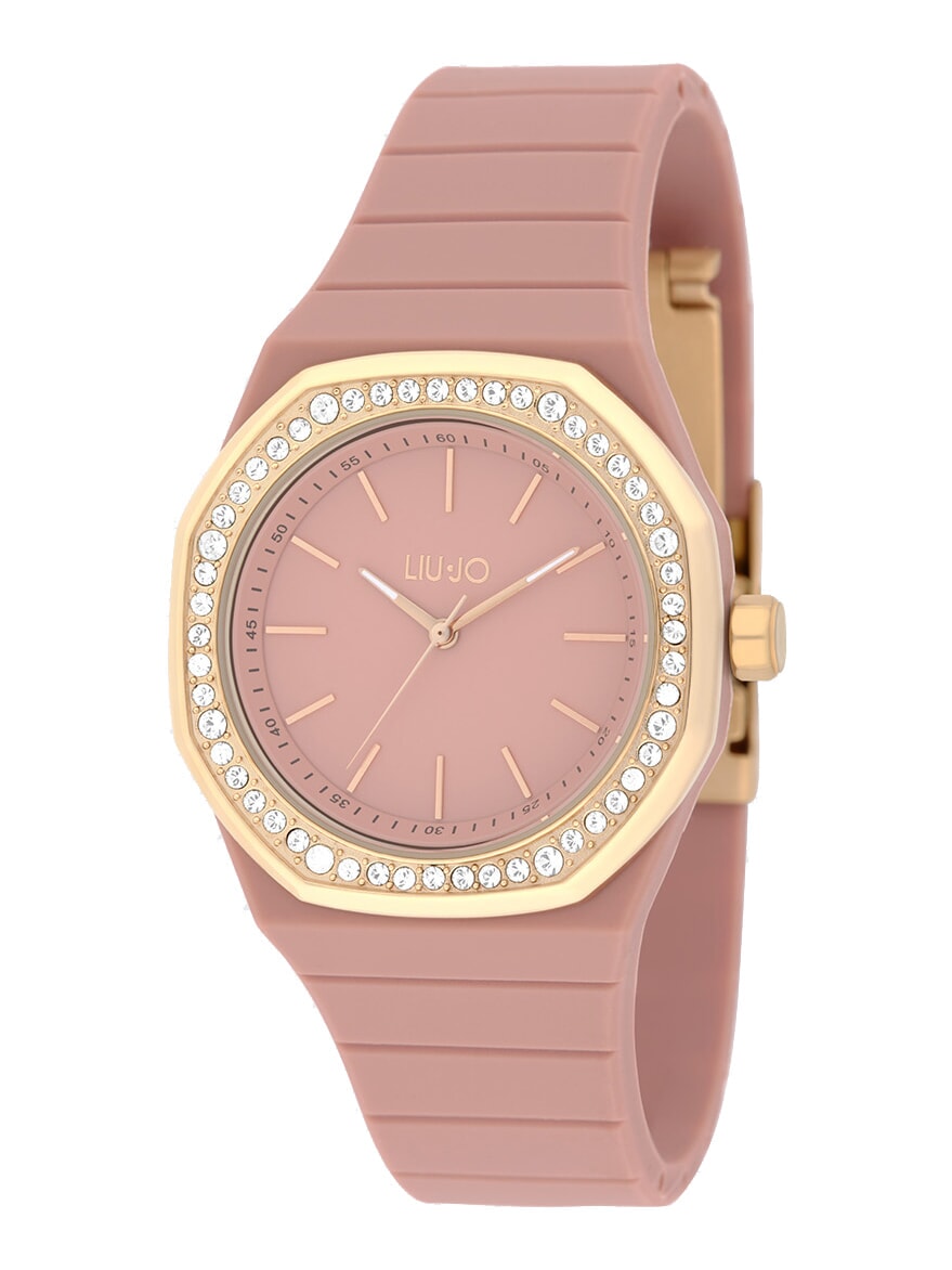 Rose gold-colored stainless steel case