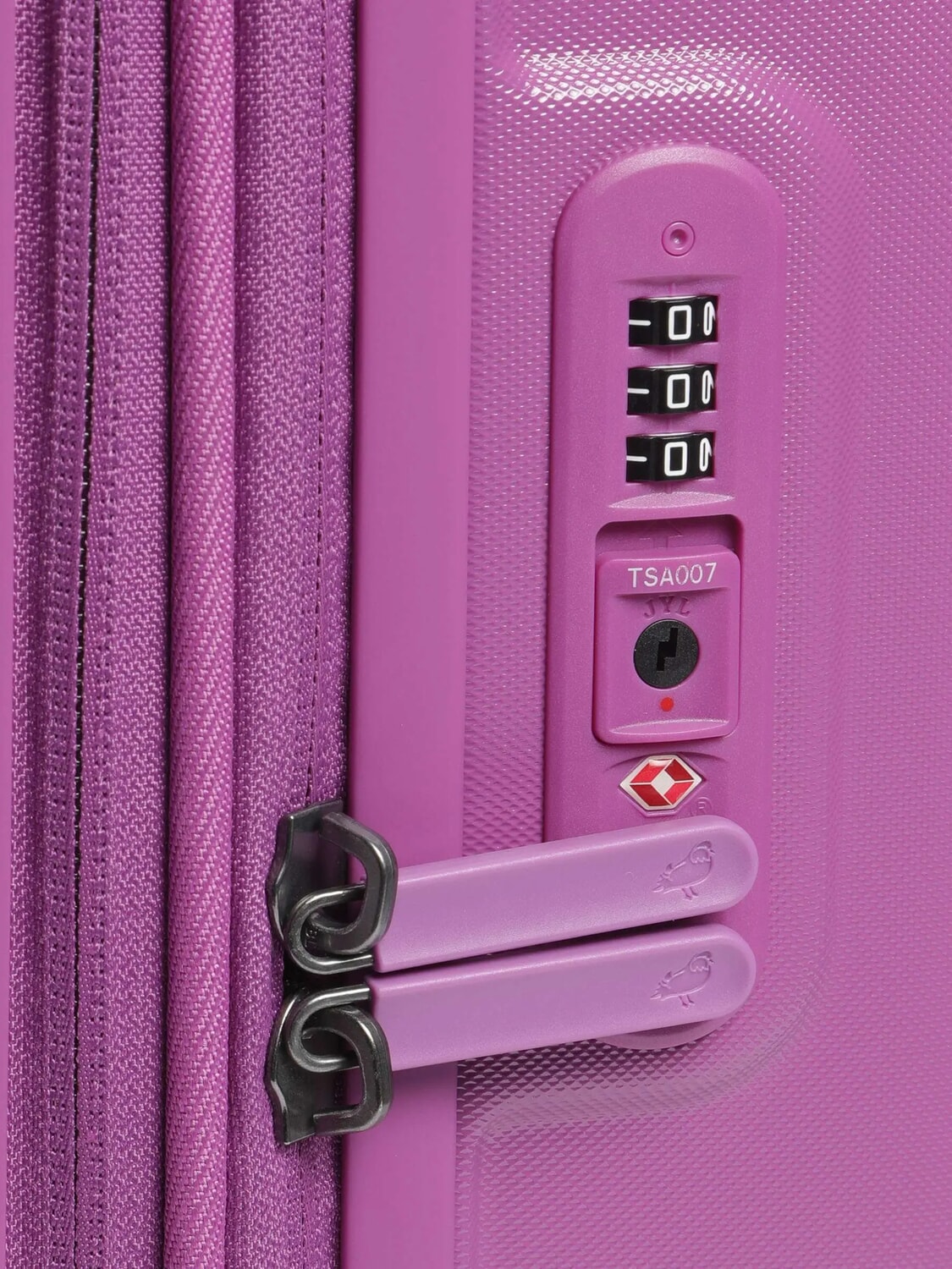 - Three-digit combination lock with TSA function (required for flights to and from the USA)