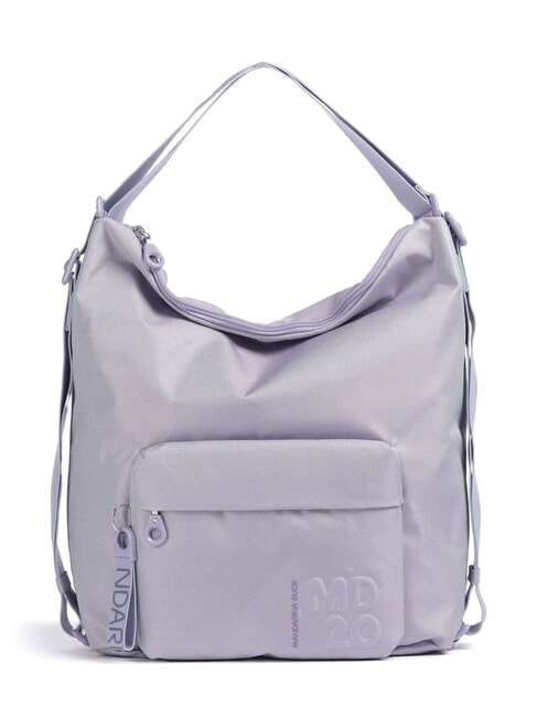 - Shoulder bag convertible into a polyester backpack with an iridescent effect
