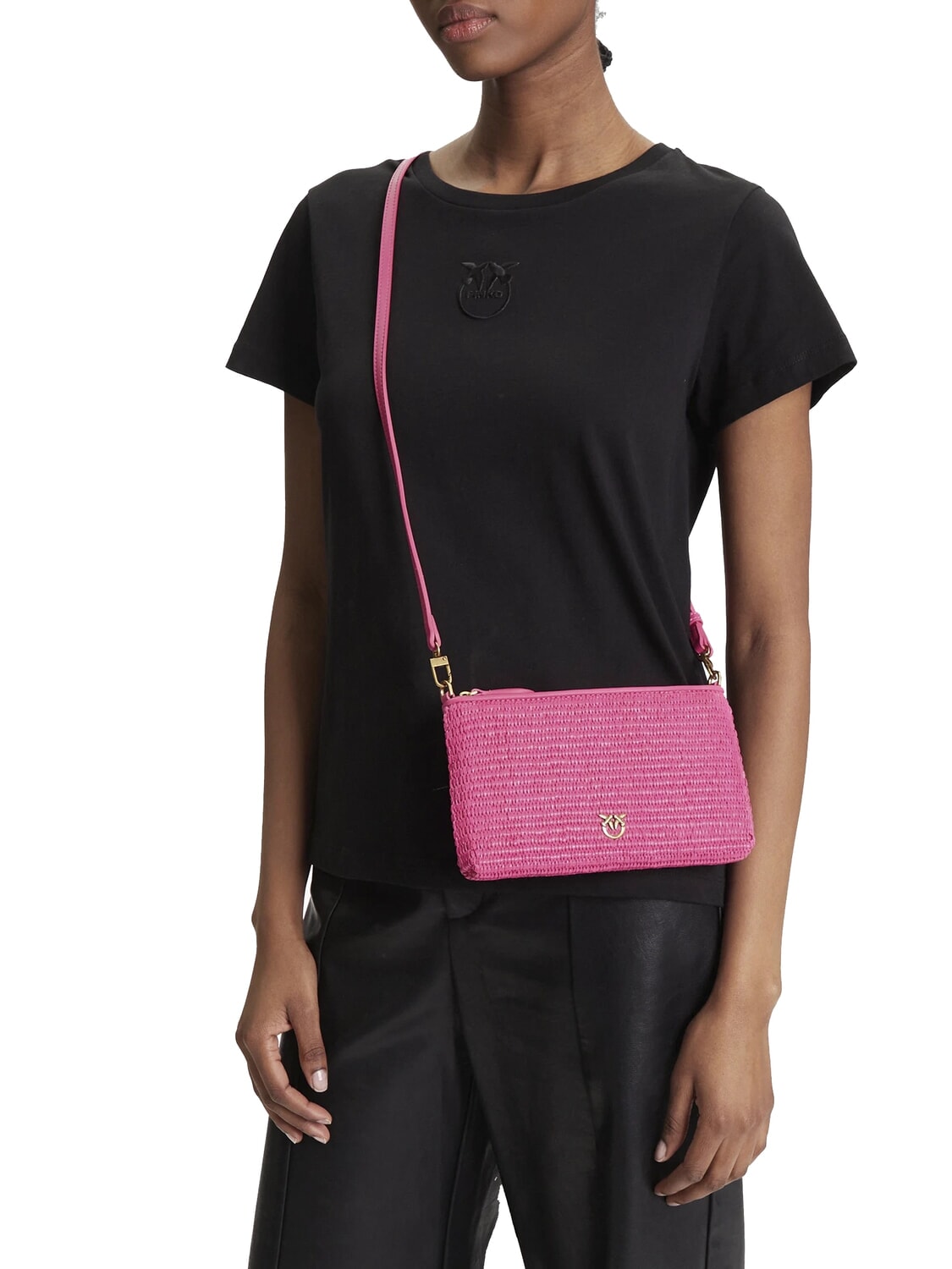 FLAT Raffia clutch bag with shoulder strap