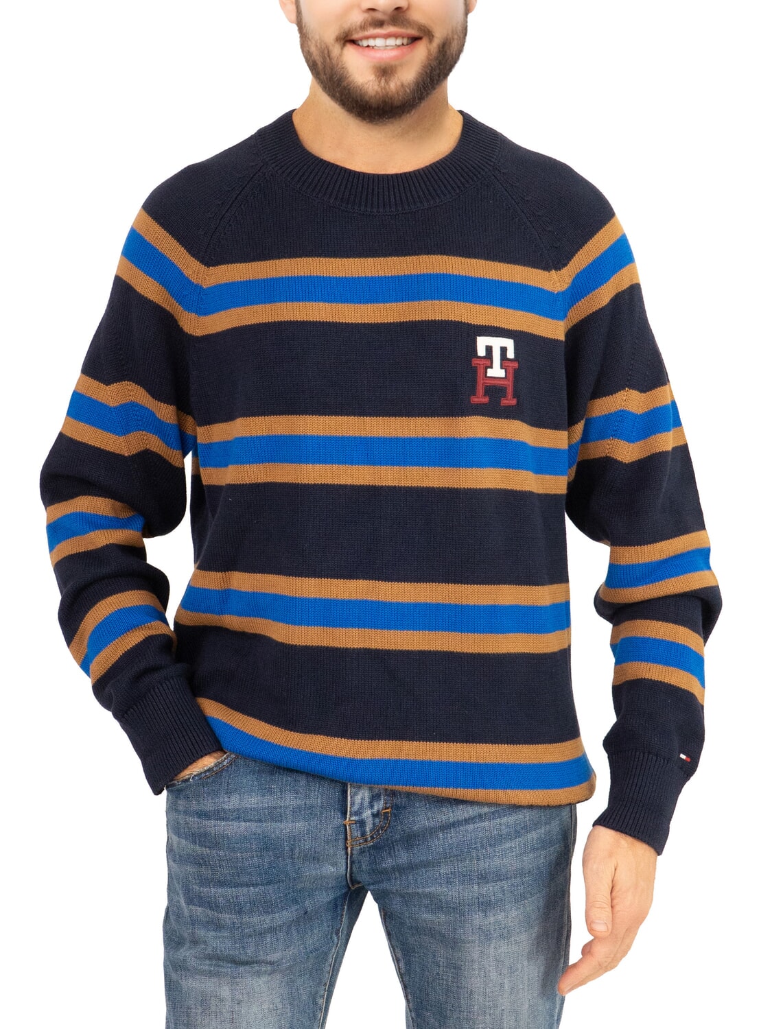 TH Crew neck cotton sweater with logo embroidery