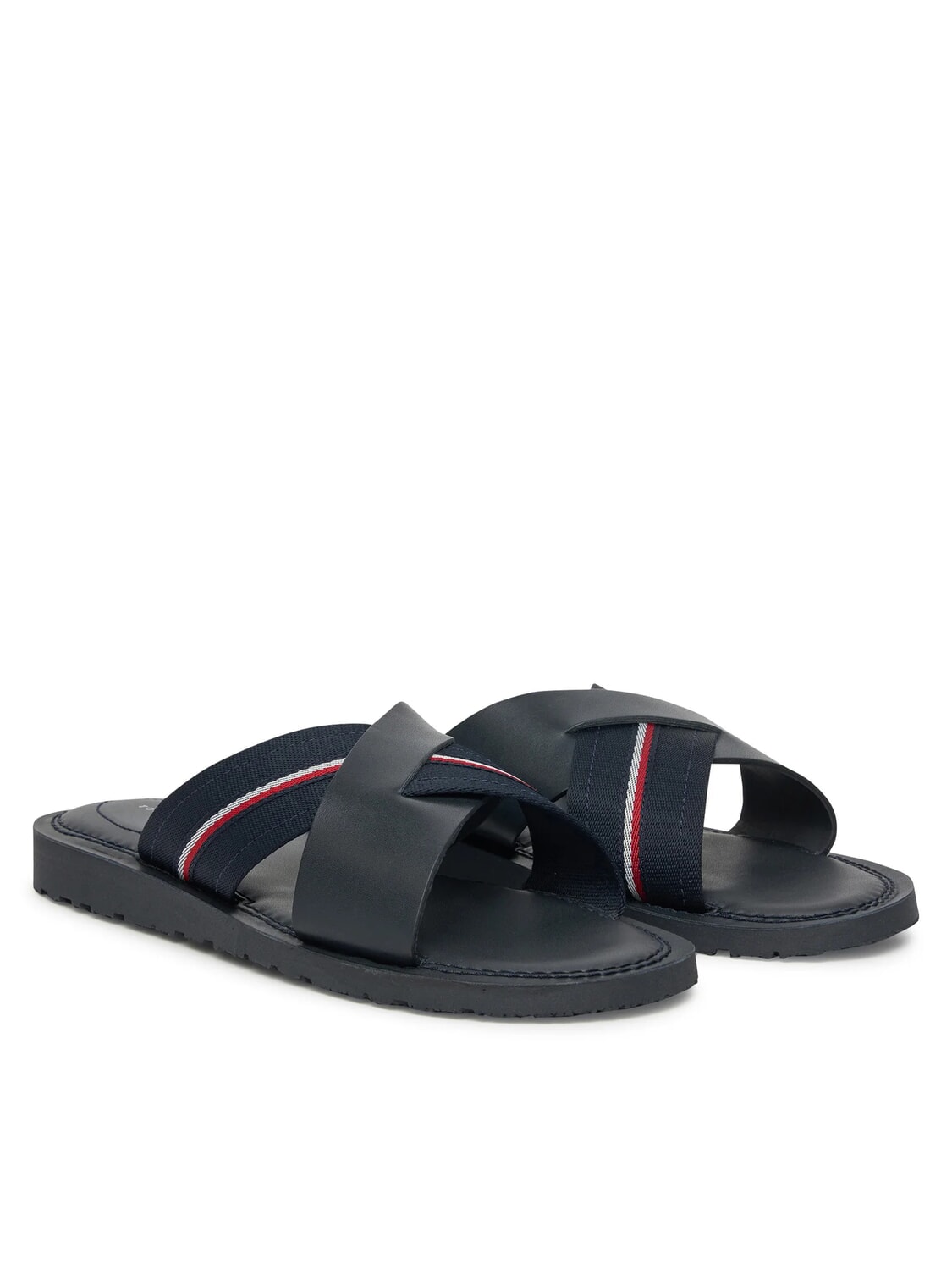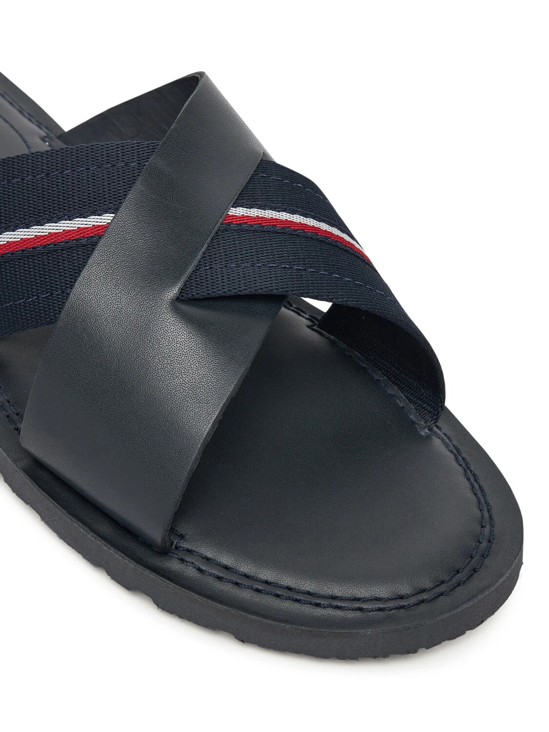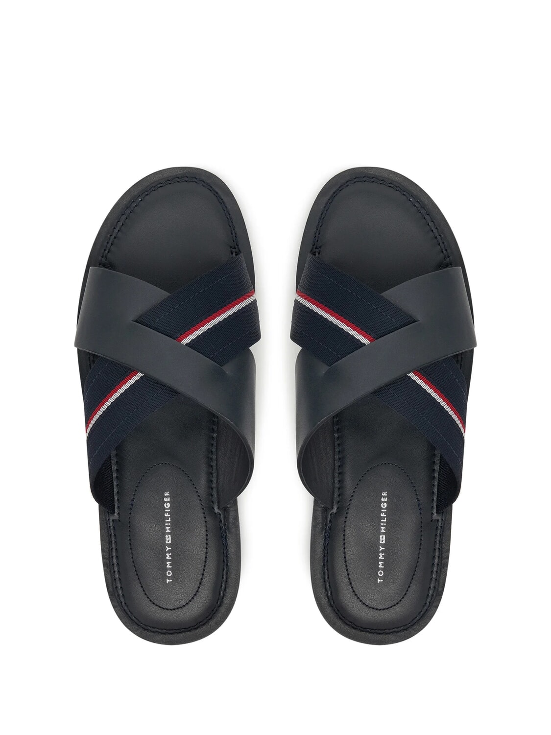 TH Leather slippers with logo ribbon