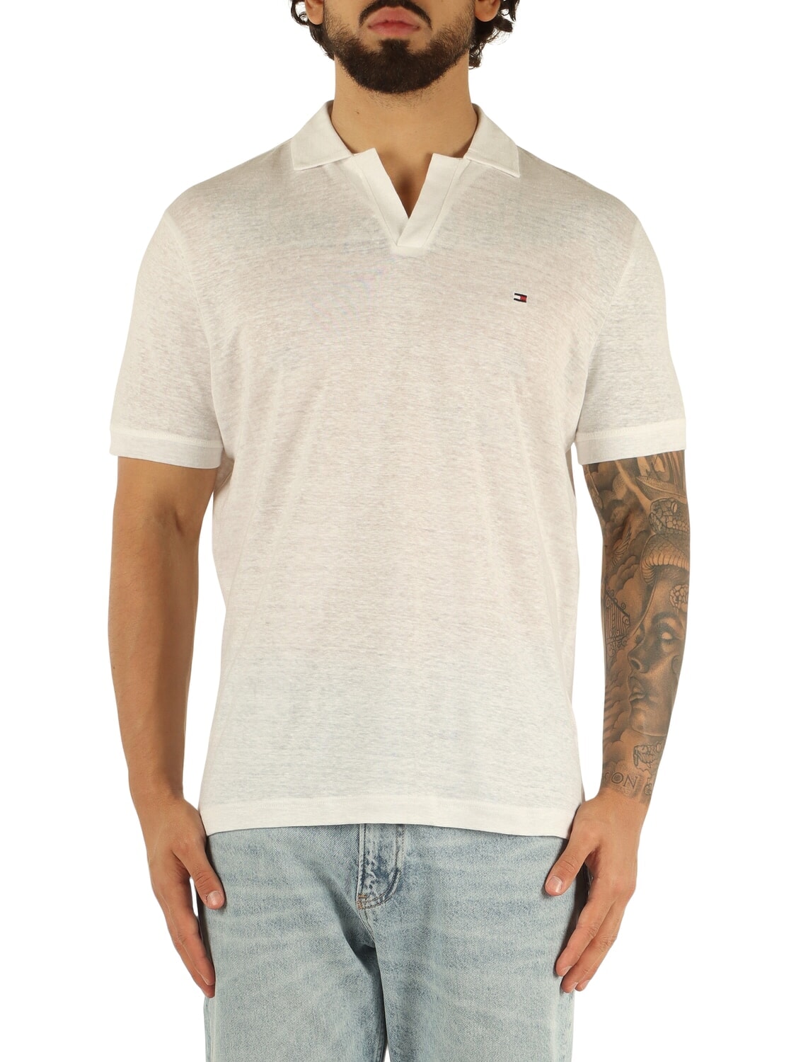 TH Short-sleeved linen polo shirt